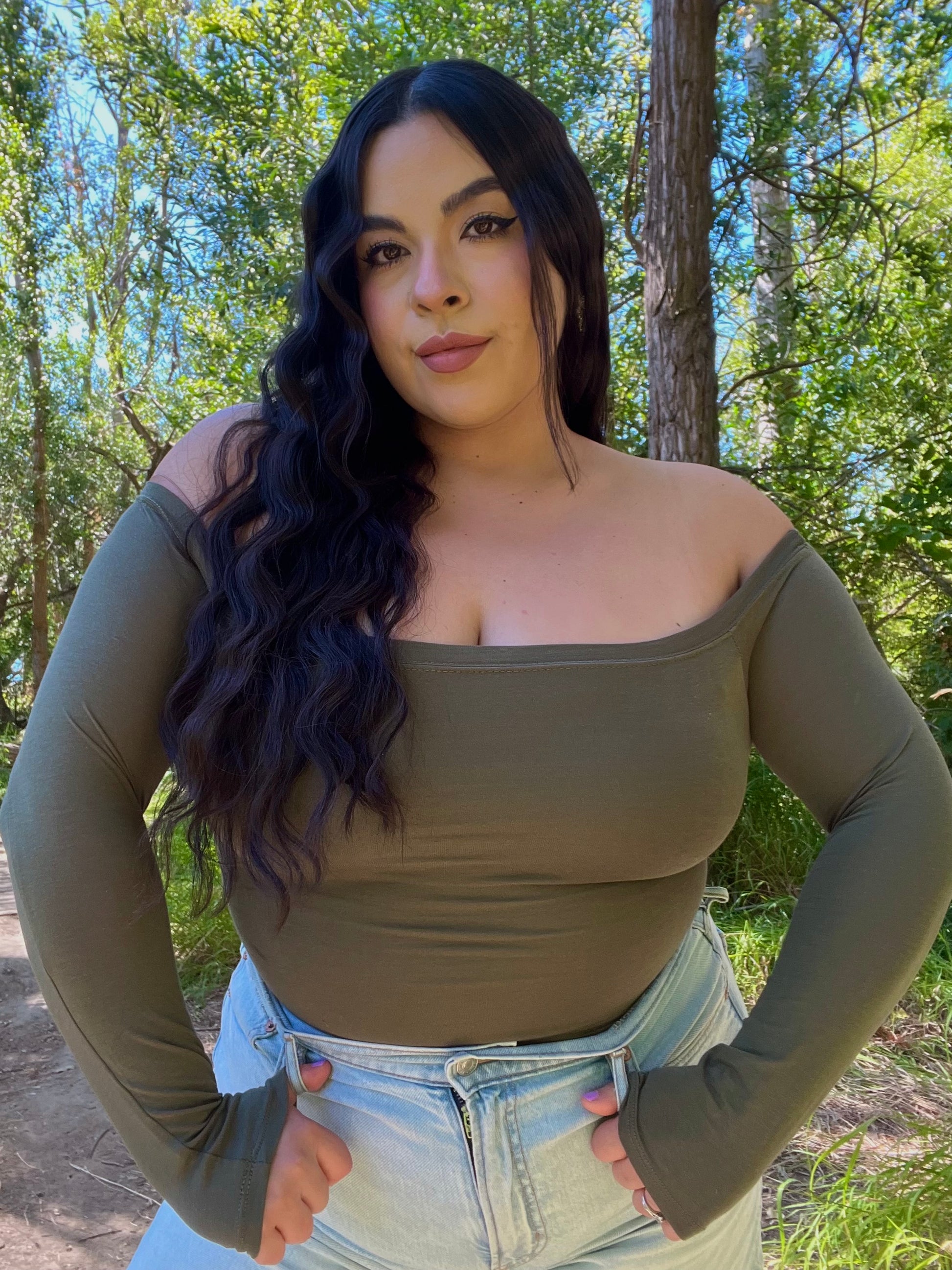 Elevate your look with our off the shoulder long sleeve bodysuit. Neckline is super flattering, with a fitted silhouette. Has a double layered soft fabric (not see through).