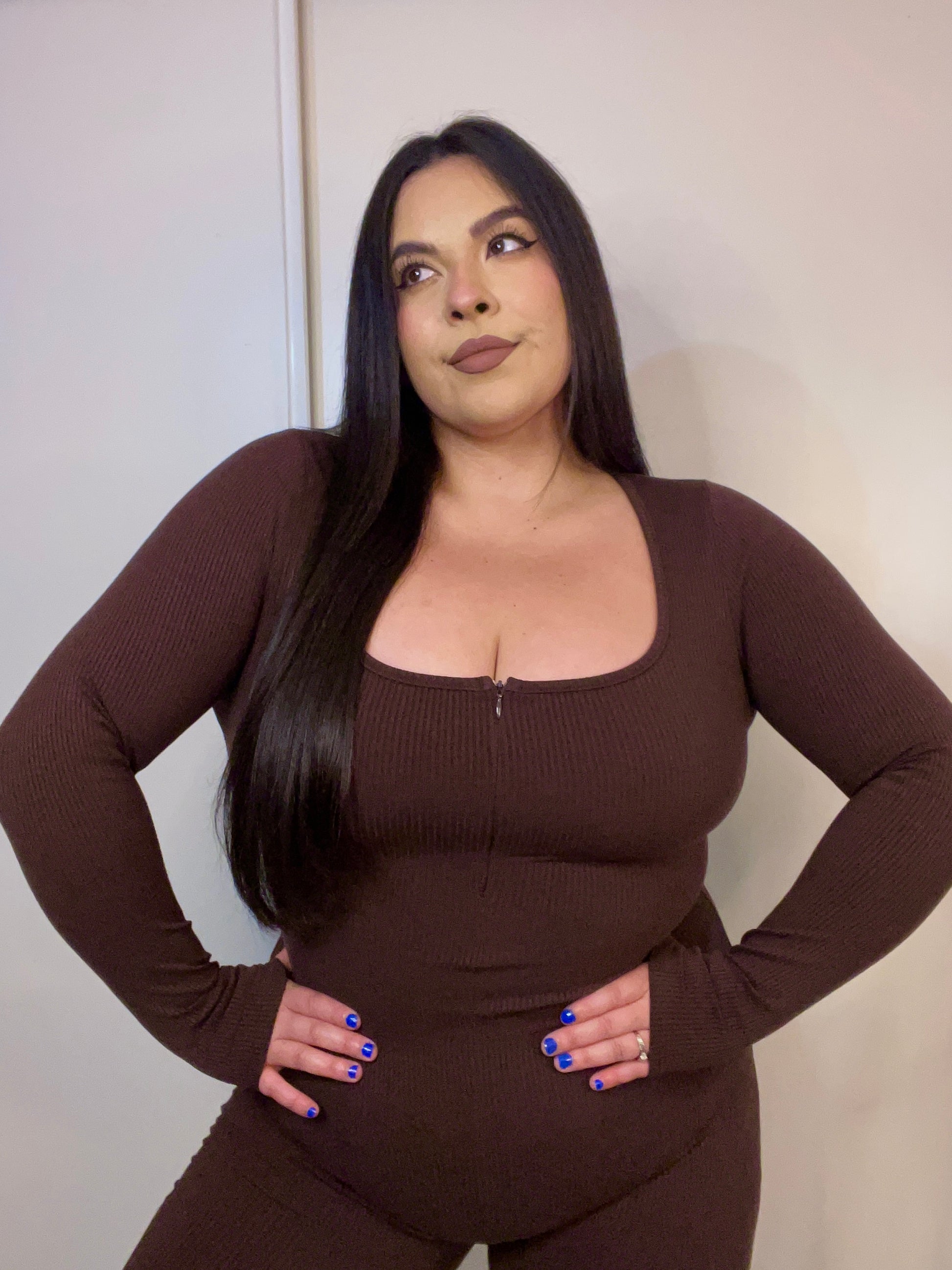 This snatching jumpsuit will become your new wardrobe staple. Has thick ribbed fabric that hugs your body and molds every curve with love. Can be worn in so many ways, possibilities are endless. Runs true to size. For a more fitted fit size down.