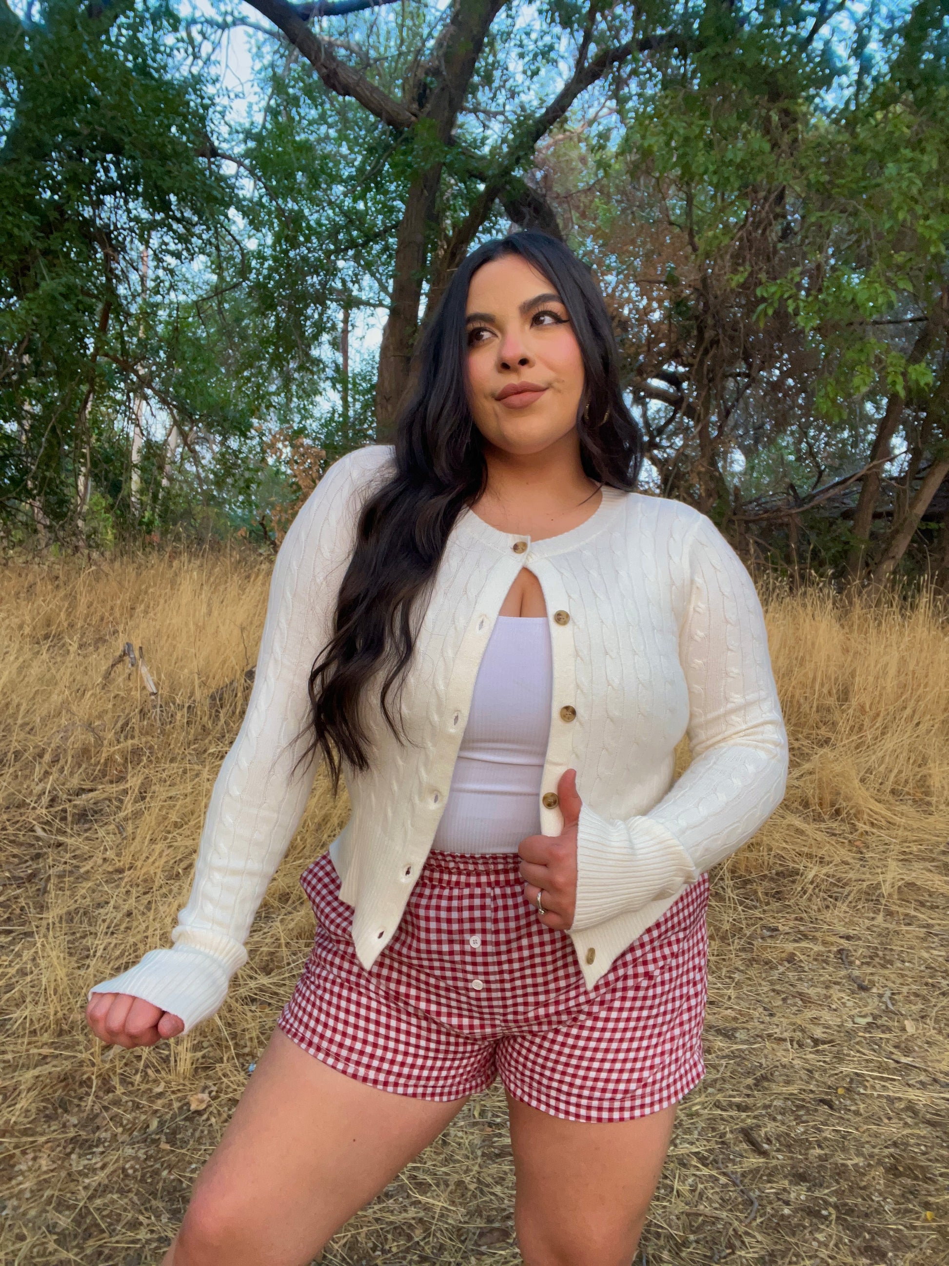 The cutest shorts for spring & summer. These woven gingham boxer short are fresh comfortable and stylish. Skip the denim shorts & wear these! Have an elastic waistband with a high rise relaxed fit. Shorts are fully lined with functional pockets on sides. Definitely a must have!